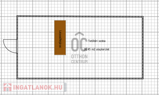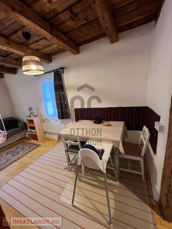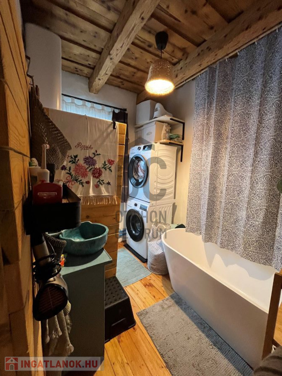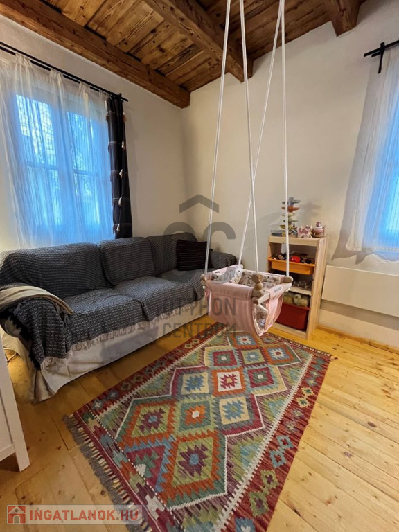 Itt a földszinten van egy nappali, fürdőszoba, a tetőtérben pedig még egy szoba.