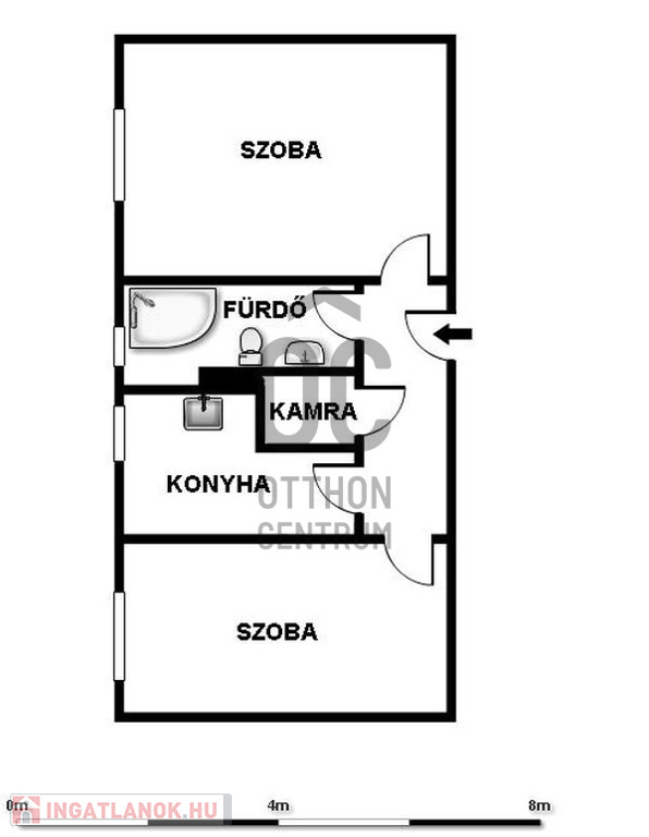 - 3 különnyíló szobával rendelkezik, mivel a konyhából hálószobát alakítottak ki.