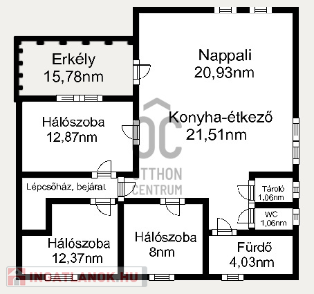 Az ingatlan három külön nyíló hálószobával és egy tágas amerikai konyhás nappalival rendelkezik. Az elosztása kiváló, hiszen minden szoba önállóan megközelíthető. A nappaliból egy 15 nm-es erkélyre léphetünk ki, ahonnan gyönyörű kilátás nyílik a Kálvária-dombra.